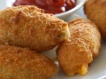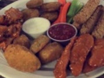 3 wings, 3 boneless wings, 3 mozzarella sticks, 3 jalapeno poppers and 3 fried zucchini.